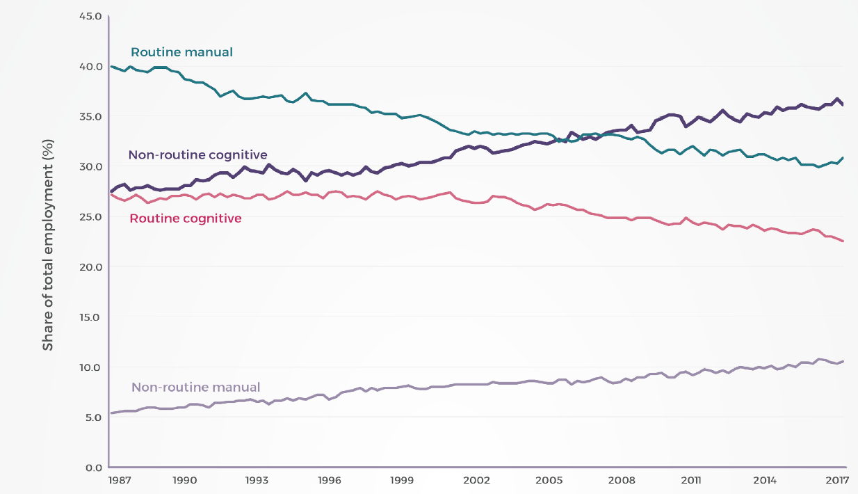Appendix C: Change In share of total Australian employment, by skill type, 1987-2017